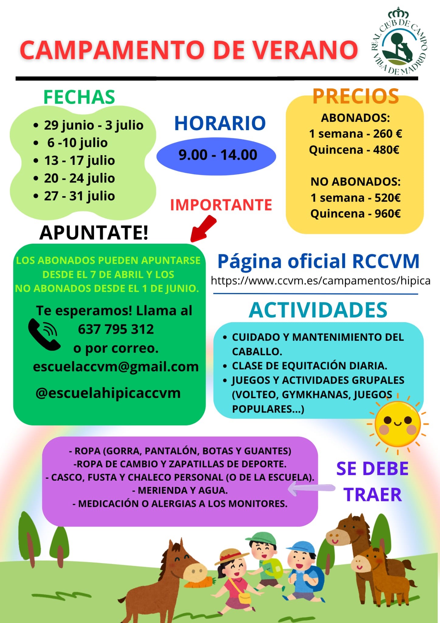 De 12.30h a 14h: Actividades complementarias, juegos, enseñanzas, ecuestres, etc..