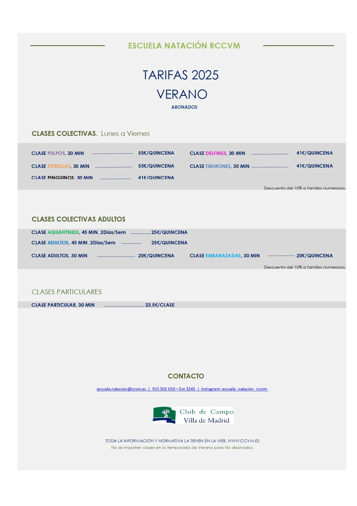 Las renovaciones durante el curso se realizarán automáticamente, mediante domiciliación bancaria. Los alumnos que deseen darse de baja de la escuela, deberán comunicarlo mediante mail a la dirección escuela.natacion@ccvm.es, antes del día 15 del mes anterior al cual solicitan la baja (esta deberá ser para un trimestre completo, no admitiéndose bajas para mitad de un trimestre). Los grupos ofertados para esta temporada están publicados tanto en la web como en los tablones de anuncios de la piscina.