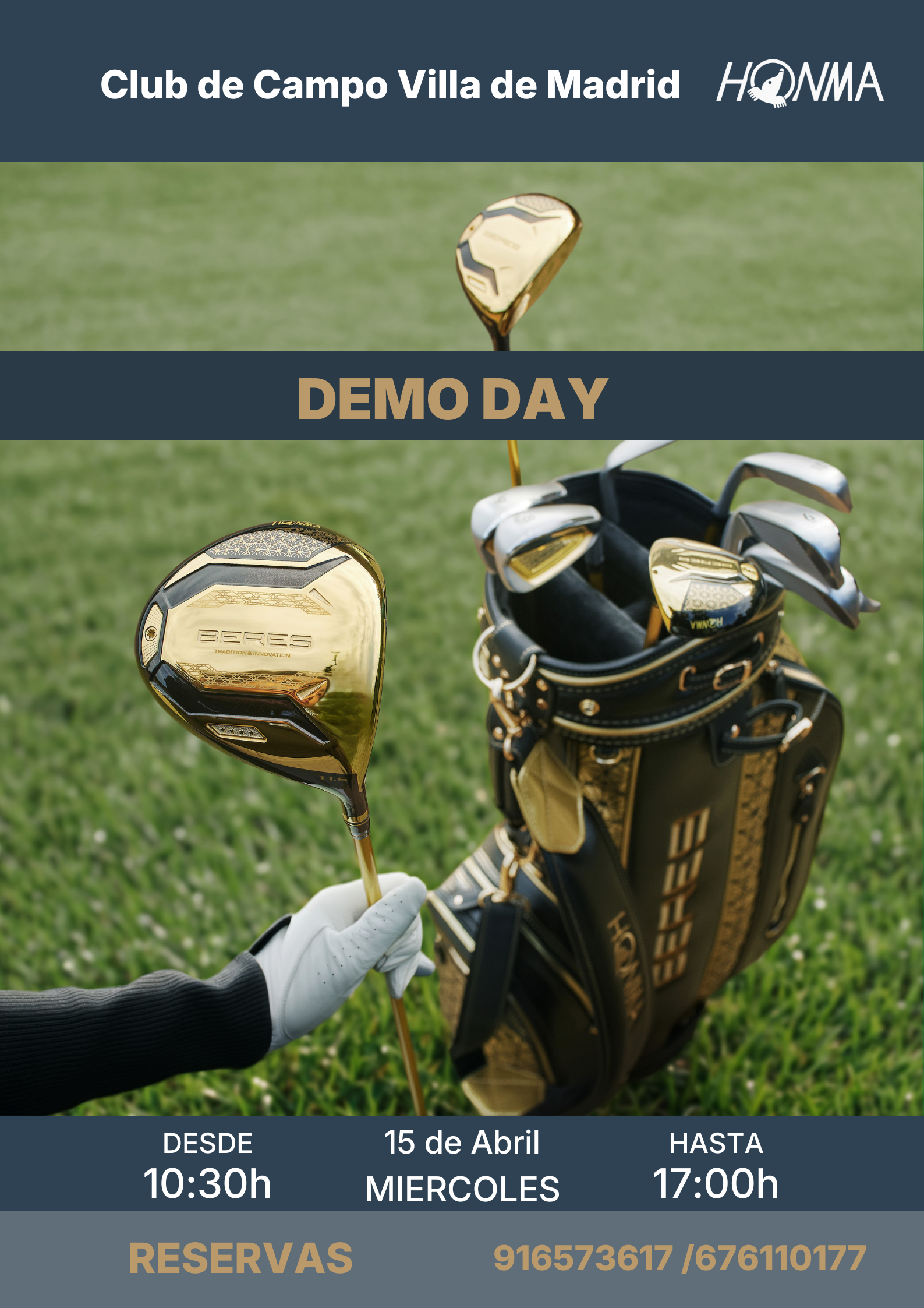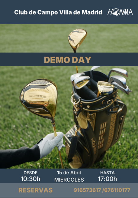 Eventos | Golf FITTING - GOLF STUDIO HONMA Fechas Inicio: 15 de Abril de 2026 - 10:30 Fin: 15 de Abril de 2026 - 17:00 Observaciones Documentación CARTEL DEMO CLUB DE CAMPO MADRID (1).png