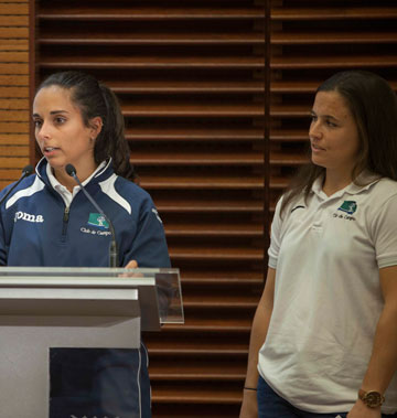Las capitanas de los equipos, Rocío Gutiérrez y Adriana Coghen, han hecho entrega a la alcaldesa de la camiseta conmemorativa de los equipos. Rocío Gutiérrez es una de las deportistas del Club que estará con la selección española en los próximos Juegos Olímpicos de Río 2016, junto a Mari Ángeles Ruiz, Alicia Magaz, María López y Beatriz Pérez.