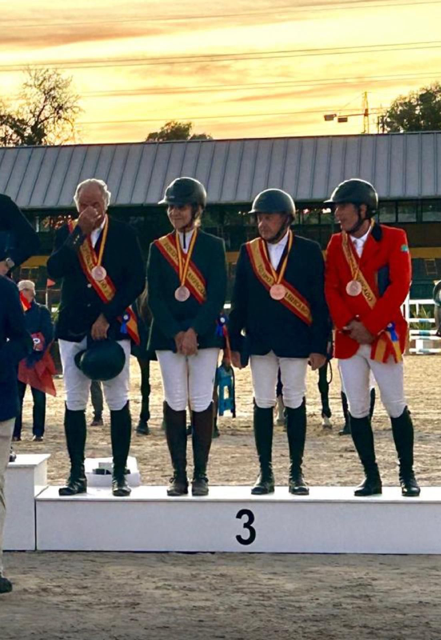 El RCCVM, entrenado por D. Alfonso Gredilla Pereda, ha logrado la medalla de bronce en el IX Campeonato de España de Saltos de Jinetes Veteranos por equipos 1*, celebrado este sábado 8 de noviembre, en las magníficas instalaciones del Real Club Pineda de Sevilla.