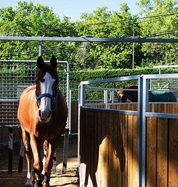 1 pista de hierba natural, con graderío y servicios de cafetería, taquillas, tribuna de jurado, pabellón de presidencia, aseos, 40 boxes fijos, etc.