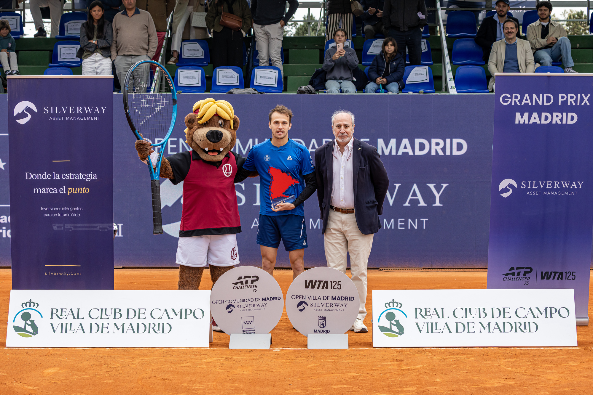 En la entrega de trofeos de ambas finales individuales, que se han celebrado simultáneamente, han contado con la presencia de Tati Rascón, presidente de la Federación de Tenis de Madrid (FTM); Juan Carlos Vera, gerente del Real Club de Campo Villa de Madrid; Guillermo Sánchez, jefe de Deportes RCCVM; Antonio Zapatero, delegado de Tenis RCCVM y vicepresidente segundo de la FTM; Jorge Mendieta, director del Grand Prix Madrid, y Pedro Escudero, CEO de Silverway Asset Management.