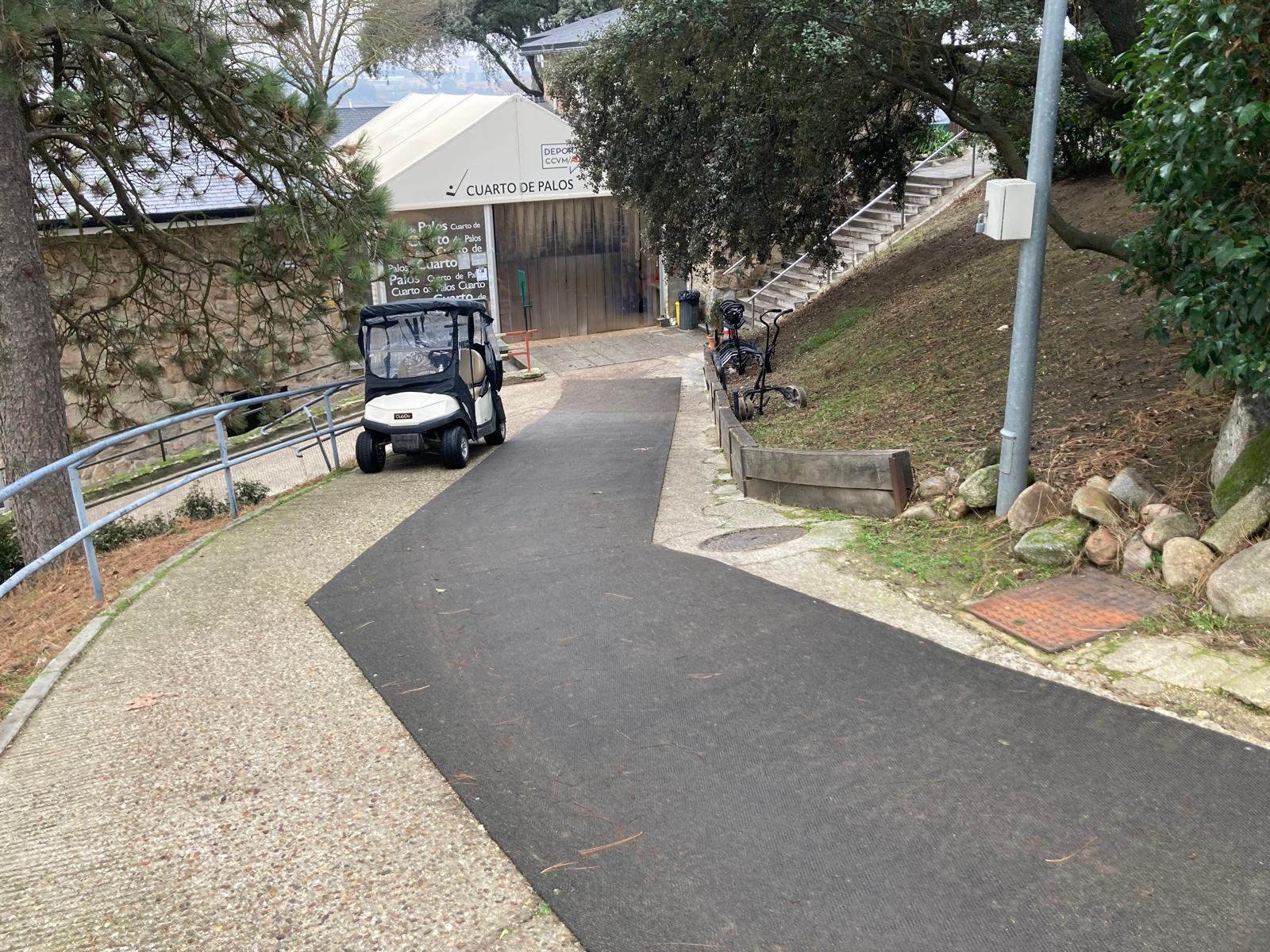 En la visita a nuestras instalaciones para practicar la actividad de golf, rogamos que toda persona preste atención a las zonas con hielo de nuestros campos y, especialmente, en la bajada de acceso al cuarto de palos. Utilice las escaleras y use la barandilla como asidero para evitar accidentes.