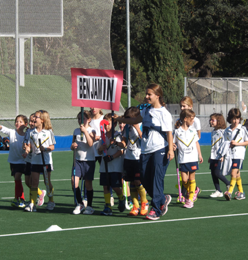 Todo empezó a las 12:30 cuando salieron los dos jugadores más pequeños de la Escuela de Hockey sujetando la bandera del club. Detrás de ellos, la categoría pre benjamín que este año podemos decir que es de las que más jugadores/as tiene en sus filas. Luego los benjamines y alevines. En estas categorías el desfile es un momento único y se les ve en sus caras como disfrutan al pasar por delante de sus padres y familiares y recibir los aplausos de todos ellos.